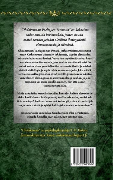 Ohdakemaan Vaeltajien Tarinoita on kokoelma sadunomaisia kertomuksia, jotka tarjoavat mahdollisuuden oivaltaa jotakin oleellista ihmisyydestä, olemassaolosta ja omasta elämästä. Tarinoitten kirjoittaja on psykologi ja neuropsykiatrinen valmentaja, joka on perehtynyt myös tietoiseen läsnäoloon. Jotkut tarinoista ovat tuttuja saman kirjoittajan Ohdakemaa- fantasiakirjasarjasta, mutta suurin osa on aiemmin julkaisematonta materiaalia. Kirjanen tarjoaa kurkistuksen Ohdakemaa-sarjan sisällölliseen tematiikkaan, mutta toimii myös itsenäisenä teoksena; tarjoten lukijalle niin psykologista kuin eettistä pohdittavaa, ja kenties myös avaimia henkilökohtaiseen elämänmuutokseen. Vaeltajien tarinat voivat auttaa sinua ymmärtämään paremmin itseäsi ja mielesi sisäisiä ristiriitoja, ja myös toisia kanssakulkijoita. Joku näistä tarinoista saattaa johdattaa sinut portille, jonka takana odottaa uudenlainen elämä, jossa on enemmän iloa ja rauhaa. Ja joku tarinoista voi antaa sinulle avaimen, niin että pääset tuosta portista ulos. Mutta uskallatko mennä eteenpäin, kun näet kaiken aiemmin todeksi kuvittelemasi tuolle puolen; kenties vain valoa, muttet mitään muotoja? Älä huolestu! Sinun tarvitsee vain lukea. Oivallus tulee ehkä perästäpäin, oikealla hetkellä; juuri silloin, kun tarvitset sitä.