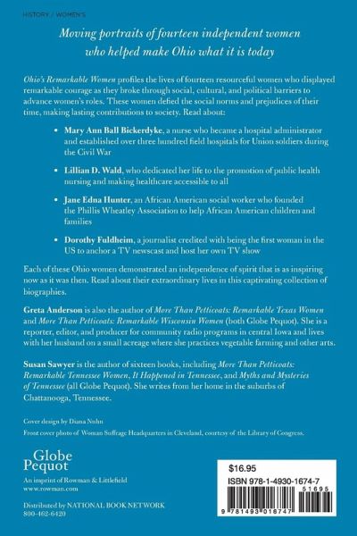 Ohio's Remarkable Women: Daughters, Wives, Sisters, and Mothers Who Shaped History profiles the lives of the state's most important historical figures--women from across Ohio, from many different backgrounds, and from various walks of life. With enduring strength and compassion, these remarkable women broke through social, cultural, and political barriers to make contributions to society that still have an impact today.