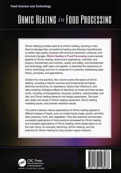 Ohmic heating provides rapid and uniform heating, resulting in less thermal damage than conventional heating and allowing manufacturers to obtain high-quality products with minimum sensorial, nutritional, and structural changes. Ohmic Heating in Food Processing covers several aspects of Ohmic heating: science and engineering, chemistry and physics, biochemistry and nutrition, quality and safety, and development and technology, both basic and applied. It describes the importance of Ohmic technology and how to implement it in practice, addressing basic theory, principles, and applications.
