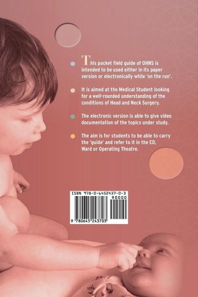 This is a pocket field guide of the curriculum of otolaryngology -Head and Neck surgery. It is aimed at the medical student who is looking for a well rounded understanding of the conditions of Head and Neck surgery. The aim is for students to access the photographs and text to augment learning in the emergency room, ward and operating theatre.
