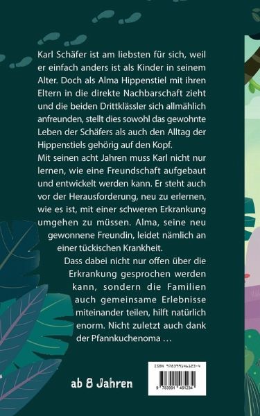 Karl Schäfer ist am liebsten für sich, weil er einfach anders ist als Kinder in seinem Alter. Doch als Alma Hippenstiel mit ihren Eltern in die direkte Nachbarschaft zieht und die beiden Drittklässler sich allmählich anfreunden, stellt dies sowohl das gewohnte Leben der Schäfers als auch den Alltag der Hippenstiels gehörig auf den Kopf. Mit seinen acht Jahren muss Karl nicht nur lernen, wie eine Freundschaft aufgebaut und entwickelt werden kann. Er steht auch vor der Herausforderung, neu zu erlernen, wie es ist, mit einer schweren Erkrankung umgehen zu müssen. Alma, seine neu gewonnene Freundin, leidet nämlich an einer tückischen Krankheit. Dass dabei nicht nur offen über die Erkrankung gesprochen werden kann, sondern die Familien auch gemeinsame Erlebnisse miteinander teilen, hilft natürlich enorm. Nicht zuletzt auch dank der Pfannkuchenoma ...