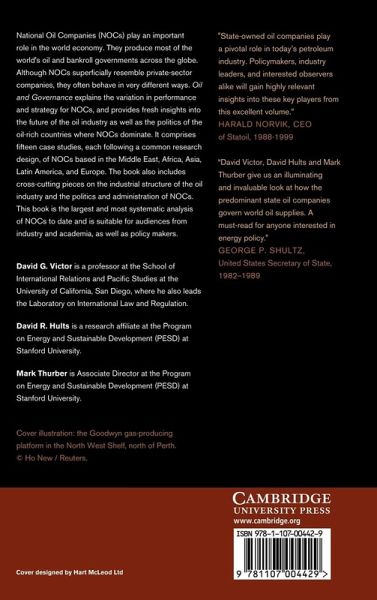 List of figures; List of tables; Part I. Introduction: 1. Introduction David Hults, Mark Thurber and David Victor; Part II. Thematic Studies of National Oil Companies: 2. The political economy of expropriation and privatization in the oil sector Christofer Warshaw; 3. Hybrid governance: state management of national oil companies David Hults; 4. On the choice of oil company: risk, management, and the frontier of the petroleum industry Pete Nolan and Mark Thurber; Part III. National Oil Company Case Studies: 5. Saudi Arabia - Saudi Aramco: a giant amongst giants Paul Stevens; 6. Iran - oil, monarchy, revolution, and theocracy: a study on the National Iranian Oil Company (NIOC) Paasha Mahdavi; 7. Mexico - handcuffed: an assessment of Pemex's performance and strategy Ognen Stojanovski; 8. Kuwait - Kuwait Petroleum Corporation: an enterprise in grid Paul Stevens; 9. China - China National Petroleum Corporation (CNPC): a balancing act between enterprise and government Binbin Jiang; 10. Venezuela - Petróleos de Venezuela, S.A.: from independence to subservience David Hults; 11. United Arab Emirates - awakening giant: strategy and performance of the Abu Dhabi National Oil Company David Victor and Varun Rai; 12. Brazil - Petrobras: strategy and performance Adilson de Oliveira; 13. Algeria - Sonatrach: the political economy of an Algerian state institution John Entelis; 14. Norway - Norway's evolving champion: Statoil and the politics of state enterprise Mark Thurber and Benedicte Tangen Istad; 15. Russia - Gazprom: the struggle for power Nadejda Victor and Inna Sayfer; 16. Nigeria - the Nigerian National Petroleum Corporation (NNPC) and Nigeria's network for oil patronage Mark Thurber, Ify Emelife and Patrick R. P. Heller; 17. India - fading star: explaining the evolution of India's Oil and Natural Gas Corporation Limited (ONGC) Varun Rai; 18. Malaysia - Petronas: reconciling tensions between company and state Leslie Lopez; 19. Angola - Sonangol: dexterous right hand of the state Patrick R. P. Heller; Part IV. Conclusions and Implications: 20. Major conclusions and implications for the future of the oil industry David Victor, Mark Thurber and David Hults; Part V. Appendices: I. Performance ranking; II. Depletion; Index.
