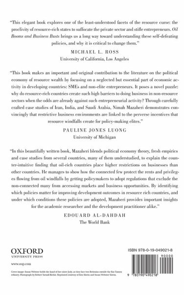 Oil Booms and Business Busts looks at how government policymaking shapes a puzzling phenomenon in economic development--the "curse" of natural resources. It investigates how oil and mineral wealth shapes a government's policies toward the business environment, entrepreneurs, and innovative activities. Other similar work either ignores the role of government policymaking in oil wealth, treats it as another effect of the rentier state, or dismisses it as illogical and incoherent. One might expect that in light of such abundances governments would encourage entrepreneurship and new businesses to compete and grow in the market, but Nimah Mazaheri shows that resource wealth instead incentivizes policymakers to focus on satisfying the interests of existing elites. They, more than oil-poor nations, institute barriers that impede the activities of domestic firms and entrepreneurs, with the result being unimpressive economic performance over the past half-century. This is the first book to examine how oil wealth affects non-elite actors who own the small and medium-sized firms that absorb a majority of the economic and labor force of these countries. Looking at two of the most important oil-producing countries in the world, Iran and Saudi Arabia, the book provides an original theory about the factors that shape a logic of policymaking in oil producing states. To extend his theory Mazaheri also looks at India, which is one of the world's main coal producers. He does this to show the effects of the gain and loss of a massive resource windfall on state policymaking toward the private sector. Ultimately Mazaheri argues that such policymaking impedes the development of a middle class and therefore democratization--a factor that can have overarching political repercussions for governmental stability.