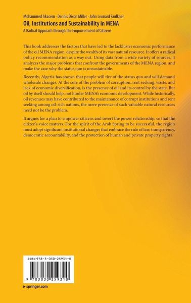 This book addresses the factors that have led to the lackluster economic performance of the oil MENA region, despite the wealth of its vast natural resource. It offers a radical policy recommendation as a way out. Using data from a wide variety of sources, it analyzes the major problems that confront the governments of the MENA region, and make the case why the status quo is unsustainable.