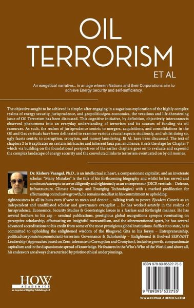 The objective sought to be achieved is simple: after engaging in a sagacious exploration of the highly complex realms of energy security, jurisprudence, and geopolitics/geo-economics, the vexatious and life-threatening issue of Oil Terrorism has been discussed. This cognitive initiative, by definition, objectively interconnects observed phenomena into an everyday understanding of terrorism and its sources of funding via oil resources. As such, the realms of jurisprudence centric to mergers, acquisitions, and consolidations in the Oil and Gas verticals have been delineated to examine various crucial aspects studiously, and whilst doing so, ugly facets centric to corruption, cronyism, and money laundering, Et Al, have been discussed. The text of chapters 2 to 6 explicates on certain intricacies and inherent faux pas, and hence, it sets the stage for Chapter 7 which via building on the foundational perspectives of the earlier chapters goes on to evaluate and expound the complex landscape of energy security and the convoluted links to terrorism eventuated on by oil monies.