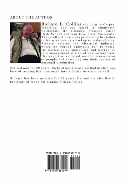 Richard L. Collins was born in Casper, Wyoming, and was raised in Sunnyvale, California. He attended Fremont Union High School and San Jose State University. Thankfully, Richard was prodded by his father to learn a trade as a backup to make a living. Richard entered the electrical industry, where he worked enjoyably for 40 years. He started as an apprentice and worked up into management at a local contracting firm. His expertise centered on the management of people and searching out their secrets of personal production. Retired now for 20 years, Richard has discovered that his lifelong love of reading has blossomed into a desire to write, as well. ¿Richard has been married for 58 years. He and his wife live in the heart of technical utopia, Silicon Valley.