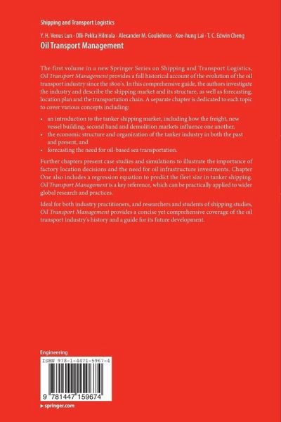 The first volume in a new Springer Series on Shipping and Transport Logistics, Oil Transport Management provides a full historical account of the evolution of the oil transport industry since the 1800's. In this comprehensive guide, the authors investigate the industry and describe the shipping market and its structure, as well as forecasting, location plan and the transportation chain. They dedicate a separate chapter to each topic to cover various concepts, including: