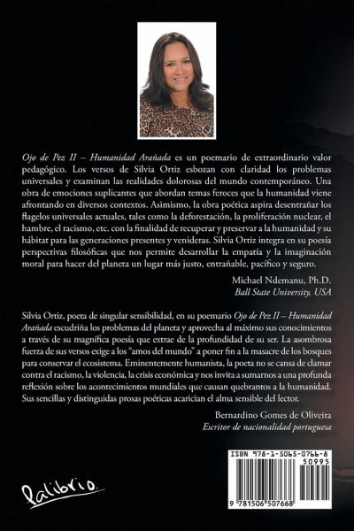 El sexto poemario de Silvia Ortiz titulado Ojo de Pez II - Humanidad Arañada, explora la presencia de hilados de odio en el silencio equívoco de una sociedad que menosprecia la vida. La escritora describe las sutilezas del mestizaje en un mundo convulsionado y muestra su enfado por la humillación de los niños víctimas del abuso mercenario de suicidios. Cuestiona enfáticamente a la poderosa sociedad de consumo y a la flagrante arbitrariedad frente a los que menos tienen. Promueve un replanteo de la educación donde la presencia tecnológica posibilite el acceso a la investigación científica y al poder creativo de los estudiantes. La escritora eleva su voz frente a las olas de calor vertidas en los vientos-terremoto debido a la tala indiscriminada de árboles, y cuestiona el alto costo económico que implica la fabricación de armas nucleares. Reta al "lobo del desempleo" causante de la crisis económica declarándolo culpable del elevado número de suicidios. El terror del fusil aflora en el festín irracional donde se mata porque se mata y nada importa la libertad de vivir en una sociedad pacífica. Los versos muestran los extremos de la ostentosa riqueza y la abyecta pobreza que revelan el sentimiento falso del escondido pan. Otra fuerza indiscutible del poemario es el desafío constante al abandono insufrible de ancianos y a la eutanasia maldita. La poeta enfatiza la necesidad de sumarse a la campaña de donación de órganos para salvar muchas vidas, y se preocupa por el descuido del agua al que denomina "lazo disecado." Respecto a los derechos humanos, ilustra con acontecimientos recientes en el mundo donde se desestima la legalidad de los derechos universales. Finalmente, Silvia Ortiz muestra la sensibilidad a galope en los versos más dolidos sobre las enfermedades mentales que a modo de "buitres descalzos" hacen mella en los seres humanos.