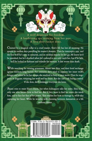 A wolf desperate for freedom. A headstrong spy running from her past. A love they cannot deny. Shin's life has lost all meaning as he spends endless days patrolling his cruel master's domain. When he catches a wolf spy, on reckless impulse, he lets her go. But then his master surprises him by allowing him to leave the forest for the first time in centuries, but in exchange for temporary freedom, he must recapture the spy and if he fails, he'll be locked in solitude for eternity. A fate worse than death. While seeking missing priestesses, Akane met Shin, and their brief exchange awakens the wolf inside her. Ever since she lost control of it, she's suppressed that side of her and tried to live as a human. She planned to bury it again, but Shin reappears, in disguise, tempting her wolf and her heart. Akane can't risk losing control. If she does, she'll endanger everyone she loves. Then kidnappers take her sister, and only Shin knows where. Caught in an uneasy alliance, they set out together. However, they find it impossible to deny their growing attraction. If Akane is willing to trust Shin, he can help her tame the raging beast inside her, but can love save Shin from eternal damnation or will he sacrifice himself to protect Akane?