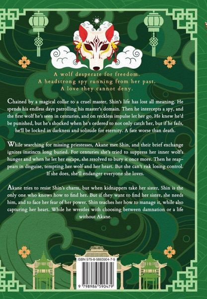 A wolf desperate for freedom. A headstrong spy running from her past. A love they cannot deny. Shin's life has lost all meaning as he spends endless days patrolling his cruel master's domain. When he catches a wolf spy, on reckless impulse, he lets her go. But then his master surprises him by allowing him to leave the forest for the first time in centuries, but in exchange for temporary freedom, he must recapture the spy and if he fails, he'll be locked in solitude for eternity. A fate worse than death. While seeking missing priestesses, Akane met Shin, and their brief exchange awakens the wolf inside her. Ever since she lost control of it, she's suppressed that side of her and tried to live as a human. She planned to bury it again, but Shin reappears, in disguise, tempting her wolf and her heart. Akane can't risk losing control. If she does, she'll endanger everyone she loves. Then kidnappers take her sister, and only Shin knows where. Caught in an uneasy alliance, they set out together. However, they find it impossible to deny their growing attraction. If Akane is willing to trust Shin, he can help her tame the raging beast inside her, but can love save Shin from eternal damnation or will he sacrifice himself to protect Akane?