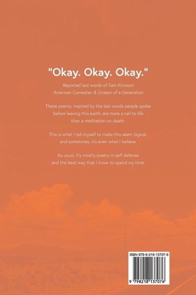 These poems, inspired by the last words people spoke before leaving this earth are more a call to life than a meditation on death. This is what I tell myself to make this seem logical, and sometimes, it's even what I believe. As usual, it's mostly poetry in self defense and the best way to spend my time.