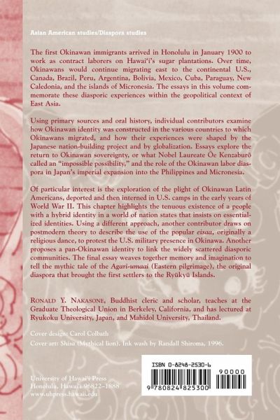 The first Okinawan immigrants arrived in Honolulu in January 1900 to work as contract laborers on Hawai'i's sugar plantations. Over time Okinawans would continue migrating east to the continental U.S., Canada, Brazil, Peru, Argentina, Bolivia, Mexico, Cuba, Paraguay, New Caledonia, and the islands of Micronesia. The essays in this volume commemorate these diasporic experiences within the geopolitical context of East Asia. Using primary sources and oral history, individual contributors examine how Okinawan identity was constructed in the various countries to which. Okinawans migrated, and how their experiences were shaped by the Japanese nation-building project and by globalization. Essays explore the return to Okinawan sovereignty, or what Nobel Laureate Oe Kenzaburo called an ""impossible possibility,"" and the role of the Okinawan labor diaspora in Japan's imperial expansion into the Philippines and Micronesia.