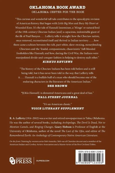 "This curious and wonderful tall tale contributes to the apocalyptic revision of American history that began with Little Big Man and Bury My Heart at Wounded Knee. It's the tale of Hannali Innominee, a 'Mingo' or natural lord of the 19th-century Choctaw Indian [and] a capacious, indomitable giant of the ilk of Paul Bunyan....Lafferty tells it straight: how the Choctaw nation, once removed, reconstituted itself and thrived in Indian territory...., how there came a schism between the rich, part-white, slave-owning, moneylending Choctaws and the 'feudal, compassionate, chauvinistic' full-blooded freeholders like Hannali; and how, during the Civil War, the Indians were manipulated divide-and-conquer fashion in helping destroy each other."-Kirkus Reviews.
