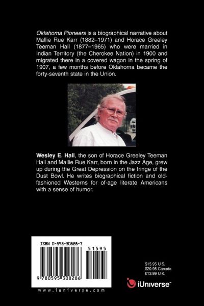 Oklahoma Pioneers is a biographical narrative about Mallie Rue Karr (1882-1971) and Horace Greeley Teeman Hall (1877-1965) who were married in Indian Territory (the Cherokee Nation) in 1900 and migrated there in a covered wagon in the spring of 1907, a few months before Oklahoma became the forty-seventh state in the Union.