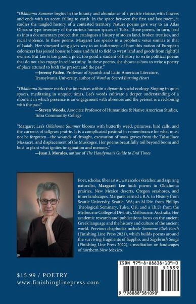 Summer in Oklahoma always brings heat, storm, and explosions of life on the tallgrass prairie, one of the most severely threatened ecosystems on earth. In recent summers, human drama has eclipsed its natural wonders. A global pandemic caught the state in a death grip, along with new moments of reckoning with Oklahoma's painful demographic history, including the removal of Native People to Indian Territory after the Civil War and the infamous Tulsa Race Massacre in 1921. Oklahoma Summer registers its summer heat, celebrates Oklahoma's beauty, laments its people's pain, and reaches for new possibilities.