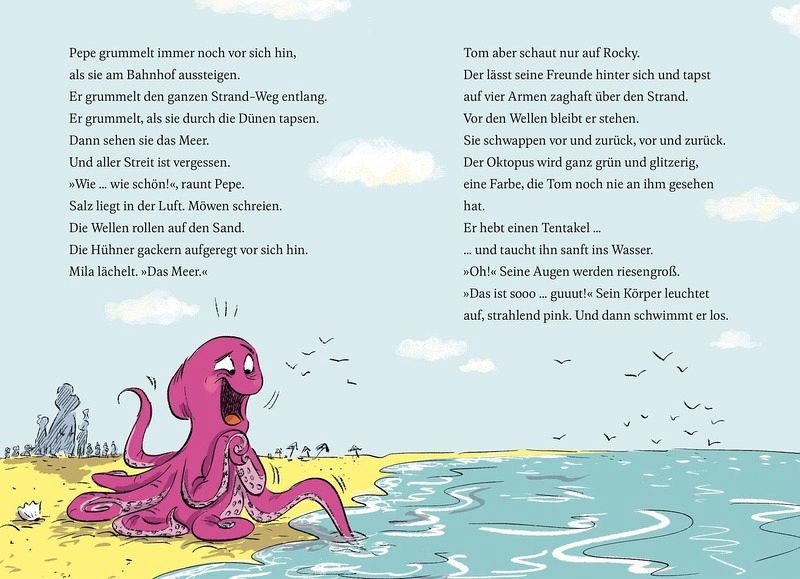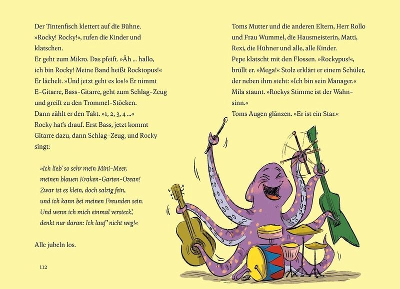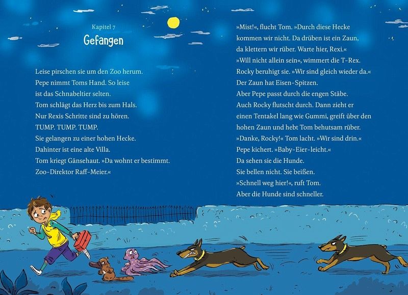 Bei Tom wohnen jetzt das T-Rex-Mädchen Rexi und das plapperige Schnabeltier Pepe - das sind eigentlich genug Haustiere. Doch dann brütet das verzauberte Schulhuhn Edda... und KNACKS! Schon purzelt der liebenswerte Oktopus Rocky in Toms Leben - ein Multitalent, das hilft, wo es kann. Nur sonderbar: Mama-Huhn Edda ist nicht mehr da! Als auch noch die Hausmeisterin der Schule verschwindet, merken Tom und seine Tiere, dass hier was nicht mit rechten Dingen zugeht...