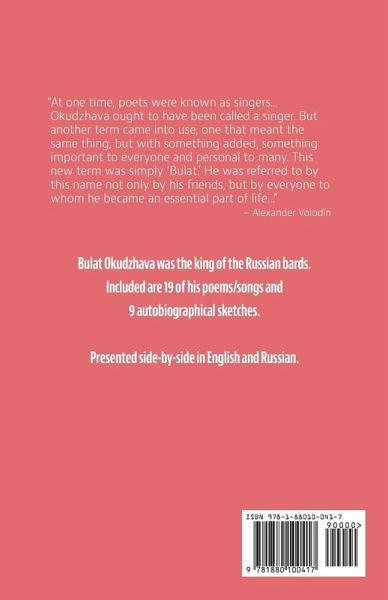 Bulat Okudzhava was the king of the Russian bards. Now 19 of his poems/songs and 9 autobiographical sketches are presented in our popular bilingual format, with English and Russian on facing pages.