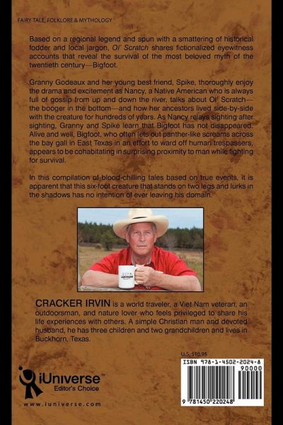 Based on a regional legend and spun with a smattering of historical fodder and local jargon, Ol' Scratch shares fictionalized eyewitness accounts that reveal the survival of the most beloved myth of the twentieth century-Bigfoot. Granny Godeaux and her young best friend, Spike, thoroughly enjoy the drama and excitement as Nancy, a Native American who is always full of gossip from up and down the river, talks about Ol' Scratch-the booger in the bottom-and how her ancestors lived side-by-side with the creature for hundreds of years. As Nancy relays sighting after sighting, Granny and Spike learn that Bigfoot has not disappeared. Alive and well, Bigfoot, who often lets out panther-like screams across the bay in East Texas in an effort to ward off human trespassers, appears to be cohabitating in surprising proximity to man while fighting for survival. In this compilation of blood-chilling tales based on true events, it is apparent that this six-foot creature that stands on two legs and lurks in the shadows has no intention of ever leaving his domain.