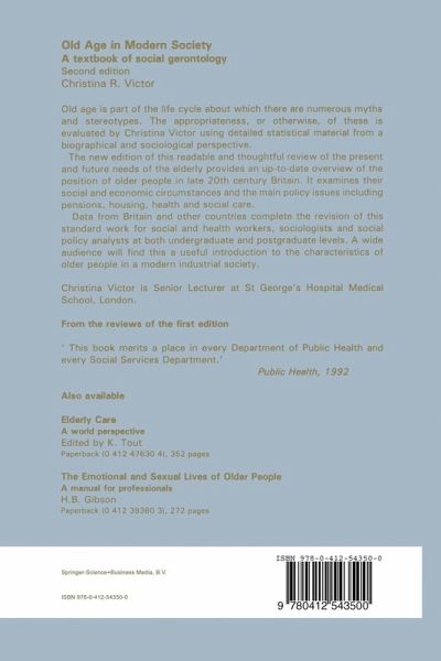 Old age is a part of the lifecycle about which there are numerous myths and stereotypes. To present an overstatement of commonly held beliefs, the old are portrayed as dependent individuals, characterized by a lack of social autonomy, unloved and neglected by both their immediate family and friends; and posing a threat to the living standards of younger age groups by being a 'burden' that consumes without producing. Older people are perceived as a single homogeneous group, and the experiment of ageing characterized as being the same for all individuals, irrespective of the diversity of their circumstances before the onset of old age. In this book, detailed statistical material is used to portray the circum stances of older people in modern society in an attempt to evaluate the appropriateness (or otherwise) of the major stereotypes of later life. This volume does not address ageing from a psychological or micro-social per spective. In particular, we do not explore major issues relating to old age. Rather we feel that, from the extensive collection of surveys concerned with the elderly, we can provide a context within which individual eld erly people can be studied from more anthropological or biographical perspectives.