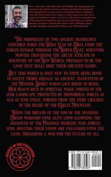 The prophecies of two ancient bloodlines converge when the Wolf Clan of Aria finds the fabled passage through the North Gate, surviving months traversing the arctic icescape in discovery of the New World, presaged to be the land that shall host their greatest glory. But this world is only new to them, being home to native tribes equally as ancient, manifested of the Mother Spirit whom gave birth to being, Her realm rich in spiritual magic imbued in the lush landscape, protected by primordial forces as old as time itself, formed from the fiery crucible in the heart of the Great Mountain. When the dreams of the son of the invading Arian warlord come alive upon glimpsing the daughter of the Mahwah medicine man, forces long awaiting their union are unleashed upon the land, triggering a war for the future of them all.