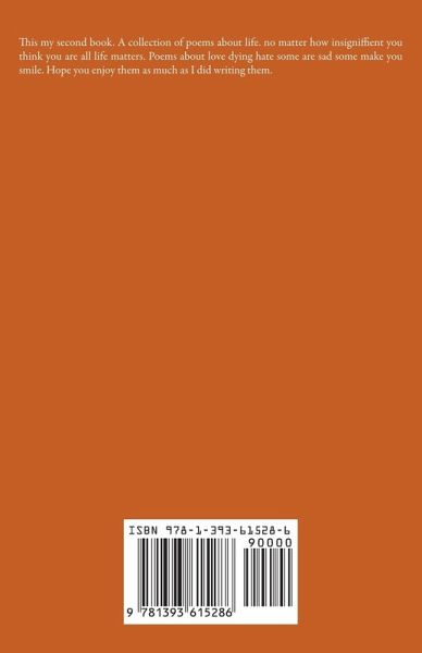 This my second book. A collection of poems about life. no matter how insigniffient you think you are all life matters. Poems about love dying hate some are sad some make you smile. Hope you enjoy them as much as I did writing them.