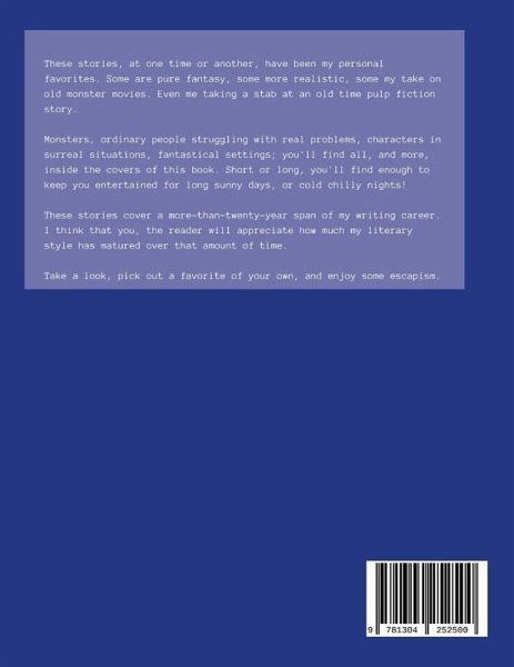A dozen stories. Personal favorites I have written. Epic Fantasy, Contemporary Realism, Weird Fiction, even my take on an old black and white monster movie. Covers more than twenty years of my writing.