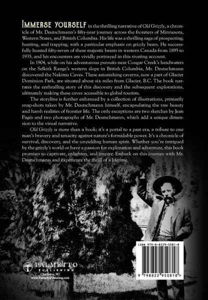 Frontier Life Chronicles: A Half-Century of Grizzly Hunting, Prospecting, and Cave Discovery in Western North America Delve into the captivating life of Mr. Deutschmann, a man who spent fifty years on the frontiers of Minnesota, Western States, and British Columbia. His life was an exhilarating blend of prospecting, hunting, and trapping, with a particular focus on the formidable grizzly bear. Between 1895 and 1924, he confronted and killed fifty-six of these magnificent creatures in western Canada, adding another to his tally in 1935. This book offers a riveting account of his encounters and experiences with these awe-inspiring beasts. In 1904, while prospecting and hunting near the headwaters of Cougar Creek on the western slope of the Selkirk Range of Mountains in British Columbia, Mr. Deutschmann stumbled upon the Nakimu Caves. These spectacular caverns, now an integral part of Glacier Dominion Park, are located approximately six miles from Glacier, B.C. The book narrates the thrilling tale of this discovery and the subsequent exploration, which eventually opened these caverns to tourists worldwide. The narrative is enriched by a series of illustrations, mostly snap-shots taken by Mr. Deutschmann himself, capturing the raw beauty and harsh realities of frontier life. The only exceptions are two sketches by Jean Pagés and two photographs of Mr. Deutschmann, which add a unique dimension to the visual storytelling. Old Grizzly is not just a book; it's a window into a bygone era, a testament to one man's courage and resilience in the face of nature's might. It's a chronicle of survival, discovery, and the indomitable human spirit. Whether you're a historian with a penchant for frontier life, a hunter seeking insight into the grizzly's world, or an outdoor enthusiast with a love for exploration and adventure, this book will captivate, educate, and inspire. Embark on this journey with Mr. Deutschmann and experience the thrill of a lifetime.