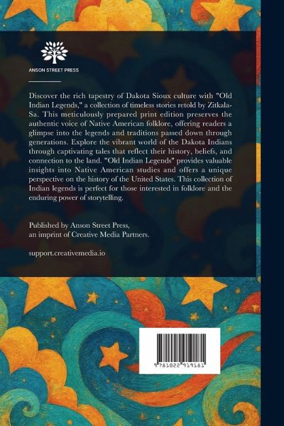 Discover the rich tapestry of Dakota Sioux culture with "Old Indian Legends," a collection of timeless stories retold by Zitkala-Sa. This meticulously prepared print edition preserves the authentic voice of Native American folklore, offering readers a glimpse into the legends and traditions passed down through generations. Explore the vibrant world of the Dakota Indians through captivating tales that reflect their history, beliefs, and connection to the land. "Old Indian Legends" provides valuable insights into Native American studies and offers a unique perspective on the history of the United States. This collection of Indian legends is perfect for those interested in folklore and the enduring power of storytelling. This work has been selected by scholars as being culturally important, and is part of the knowledge base of civilization as we know it. This work is in the public domain in the United States of America, and possibly other nations. Within the United States, you may freely copy and distribute this work, as no entity (individual or corporate) has a copyright on the body of the work. Scholars believe, and we concur, that this work is important enough to be preserved, reproduced, and made generally available to the public. We appreciate your support of the preservation process, and thank you for being an important part of keeping this knowledge alive and relevant.