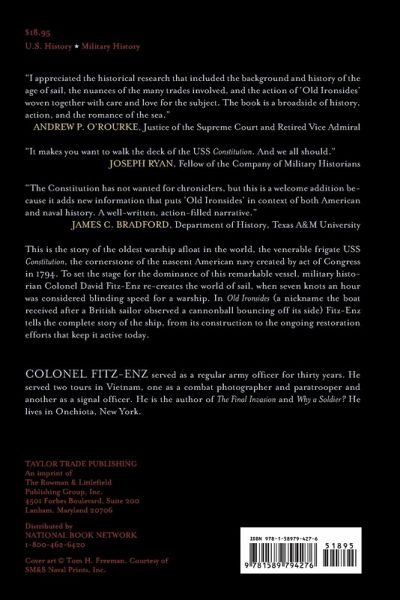 This is the story of the oldest warship afloat in the world, the venerable frigate USS Constitution, the cornerstone of the nascent American navy created by act of Congress in 1794. To set the stage for the dominance of this remarkable vessel, military historian Colonel David Fitz-Enz re-creates the world of sail, when seven knots an hour was considered blinding speed for a warship. In Old Ironsides (a nickname the boat received after a British sailor observed a cannonball bouncing off its side) Fitz-Enz tells the complete story of the ship, from its construction to the ongoing restoration efforts that keep it active today.