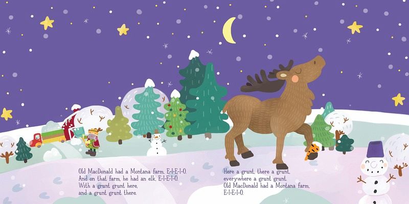 Old MacDonald had a farm . . . in Montana! In this delightful Montana twist on the familiar farm tune, the elk goes grunt grunt here, the gray wolf goes Ooooooo there, and everywhere there's lots of Montana pride! This chunky layered board book cleverly reveals each Montana animal and, when closed, forms an adorable pickup truck! Friendly Montana animals and scenery fill the pages of this irresistible book for kids.