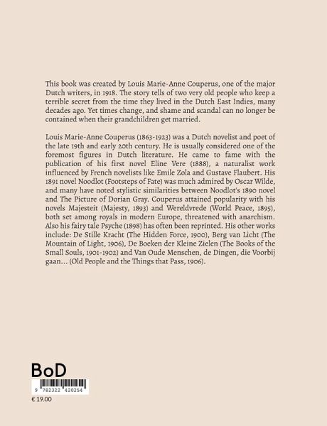 This book was created by Louis Marie-Anne Couperus, one of the major Dutch writers, in 1918. The story tells of two very old people who keep a terrible secret from the time they lived in the Dutch East Indies, many decades ago. Yet times change, and shame and scandal can no longer be contained when their grandchildren get married.Louis Marie-Anne Couperus (1863-1923) was a Dutch novelist and poet of the late 19th and early 20th century. He is usually considered one of the foremost figures in Dutch literature. He came to fame with the publication of his first novel Eline Vere (1888), a naturalist work influenced by French novelists like Emile Zola and Gustave Flaubert. His 1891 novel Noodlot (Footsteps of Fate) was much admired by Oscar Wilde, and many have noted stylistic similarities between Noodlot's 1890 novel and The Picture of Dorian Gray. Couperus attained popularity with his novels Majesteit (Majesty, 1893) and Wereldvrede (World Peace, 1895), both set among royals in modern Europe, threatened with anarchism. Also his fairy tale Psyche (1898) has often been reprinted. His other works include: De Stille Kracht (The Hidden Force, 1900), Berg van Licht (The Mountain of Light, 1906), De Boeken der Kleine Zielen (The Books of the Small Souls, 1901-1902) and Van Oude Menschen, de Dingen, die Voorbij gaan... (Old People and the Things that Pass, 1906).