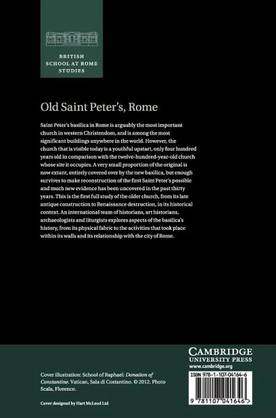 St Peter's Basilica in Rome is arguably the most important church in Western Christendom, and is among the most significant buildings anywhere in the world. However, the church that is visible today is a youthful upstart, only four hundred years old compared to the twelve-hundred-year-old church whose site it occupies. A very small proportion of the original is now extant, entirely covered over by the new basilica, but enough survives to make reconstruction of the first St Peter's possible and much new evidence has been uncovered in the past thirty years. This is the first full study of the older church, from its late antique construction to Renaissance destruction, in its historical context. An international team of historians, art historians, archaeologists and liturgists explores aspects of the basilica's history, from its physical fabric to the activities that took place within its walls and its relationship with the city of Rome.