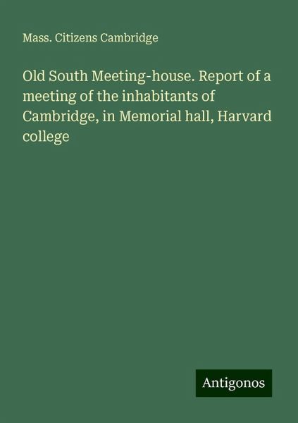 Old South Meeting-house. Report of a meeting of the inhabitants of Cambridge, in Memorial hall, Harvard college - Cambridge, Mass. Citizens