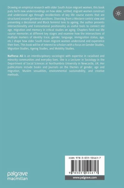 Drawing on empirical research with older South Asian migrant women, this book puts forth new understandings on how older, settled, migrant women construct and understand age through recollections of key life course events that are structured around gendered positions. Divesting from a Western-centric view and applying a decolonial and Black feminist lens to ageing, the author presents intersectionality and transnational positionality as useful tools to connect old age, migration and memory in critical studies on aging. Chapters flesh out life course memories at different key stages and examines how the intersections of multiple markers of identity (race, gender, language, immigration status, age, etc.) shape how older South Asian migrant women understand and experience their lives.