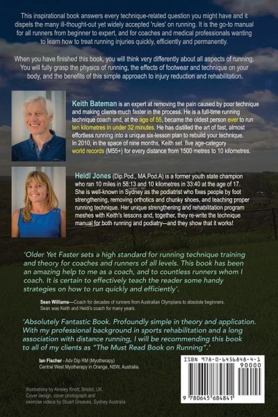 Older Yet Faster (OYF) is a manual for teaching runners how to transition to efficient running and help them avoid incurring almost all of the common running injuries as they do so. The book is ideal for beginners to learn how to run well, and for experienced runners to change over to good technique. Coaches can also use this book as a reference on how to implement technique change for their clients, and we expect it will become the go-to manual for medical and allied health professionals to help them deal with running-related injuries caused by incorrect technique and poor footwear choices. This book can also be a self-help guide for non-runners to heal common ailments holistically by following Heidi's treatment method. This fourth edition expands on the original work with updated content, including advanced strengthening exercises, rehabilitation strategies, and insights into the latest in running footwear. Whether you're a seasoned marathoner or a newcomer to the sport, *Older Yet Faster* offers a path to running smoother, faster, and injury-free. Discover the groundbreaking running technique guide by Keith Bateman and Heidi Jones, designed to help runners of all levels transition to efficient and injury-free running. In *Older Yet Faster*, readers will learn how to avoid common running-related injuries through Keith's comprehensive lessons on running form, coupled with Heidi's revolutionary foot strengthening and rehabilitation programs. Heidi details her holistic treatment method, which not only addresses running injuries but also corrects common body alignment issues. Readers will find her methods empowering as they regain confidence in their ability to heal themselves and improve their posture permanently. She has also included a section for podiatrists, where she applies the laws of physics to the feet, legs, and spine, shedding light on foot conditions that have long remained a mystery. Additionally, she critiques current podiatry teachings, highlights the negative effects of long-term orthotic use, and examines the problems with modern footwear, including school shoes. Podiatrists and other health professionals will find this engineering-based approach groundbreaking.