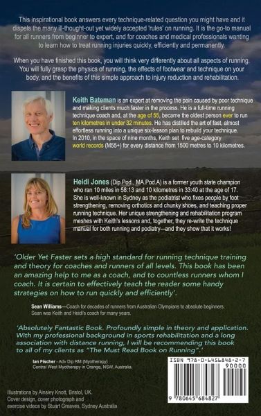Older Yet Faster (OYF) is a manual for teaching runners how to transition to efficient running and help them avoid incurring almost all of the common running injuries as they do so. The book is ideal for beginners to learn how to run well, and for experienced runners to change over to good technique. Coaches can also use this book as a reference on how to implement technique change for their clients, and we expect it will become the go-to manual for medical and allied health professionals to help them deal with running-related injuries caused by incorrect technique and poor footwear choices. This book can also be a self-help guide for non-runners to heal common ailments holistically by following Heidi's treatment method. This fourth edition expands on the original work with updated content, including advanced strengthening exercises, rehabilitation strategies, and insights into the latest in running footwear. Whether you're a seasoned marathoner or a newcomer to the sport, *Older Yet Faster* offers a path to running smoother, faster, and injury-free. Discover the groundbreaking running technique guide by Keith Bateman and Heidi Jones, designed to help runners of all levels transition to efficient and injury-free running. In *Older Yet Faster*, readers will learn how to avoid common running-related injuries through Keith's comprehensive lessons on running form, coupled with Heidi's revolutionary foot strengthening and rehabilitation programs. Heidi details her holistic treatment method, which not only addresses running injuries but also corrects common body alignment issues. Readers will find her methods empowering as they regain confidence in their ability to heal themselves and improve their posture permanently. She has also included a section for podiatrists, where she applies the laws of physics to the feet, legs, and spine, shedding light on foot conditions that have long remained a mystery. Additionally, she critiques current podiatry teachings, highlights the negative effects of long-term orthotic use, and examines the problems with modern footwear, including school shoes. Podiatrists and other health professionals will find this engineering-based approach groundbreaking.