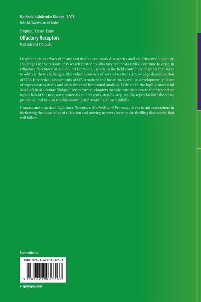 Concise and practical, Olfactory Receptors: Methods and Protocols seeks to aid researchers in furthering the knowledge of olfaction and moving us ever closer to the thrilling discoveries that will follow.