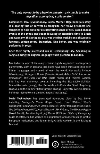 Communist. Jew. Revolutionary. Lover. Mother. Olga Benario's story is a searing tale of survival as alongside her fellow prisoners she struggles to hold onto her disintegrating sense of self. Based on real events of the 1930s-40s focusing on Benario's time in Brazil and Germany, this gripping play was the first work by one of Europe's foremost contemporary dramatists, Dea Loher, and was originally performed in 1992. After their highly successful run in Luxembourg City, Speaking in Tongues bring the English-language world premiere to London.