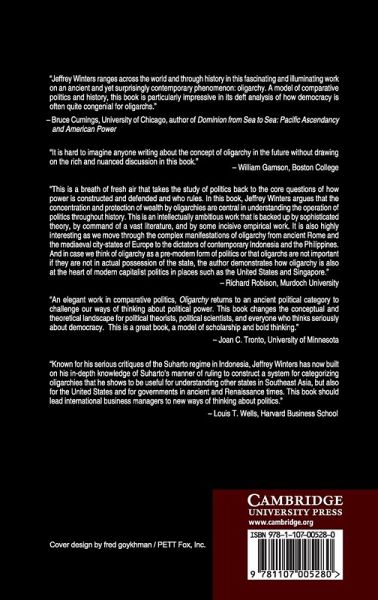 Jeffrey A. Winters specializes in oligarchy and elites in a range of historical and contemporary cases, including Athens, Rome, medieval Europe, the United States and several major countries in Southeast Asia. His research, publications and teaching focus on the areas of comparative and international political economy. Themes in his work in addition to oligarchy include state-capital relations, capital mobility and the structural power of investors, human rights, authoritarianism and democratic transitions in postcolonial states, the International Monetary Fund, the World Trade Organization and the World Bank. He has conducted extensive research in the region of Southeast Asia, especially Indonesia, Vietnam, Thailand, the Philippines, Malaysia and Singapore. He is the author of Power in Motion: Capital Mobility and the Indonesian State. With Jonathan Pincus, he co-edited Reinventing the World Bank. He has also published two other books in Indonesian. Professor Winters has received numerous grants and scholarships, including a John D. and Catherine T. MacArthur Foundation Grant; a J. William Fulbright Senior Specialist Grant; grants from the National Science Foundation, the Rockefeller Foundation, the Sawyer-Mellon Foundation, the Henry R. Luce Foundation, Yale's Center for International Studies and the J. M. Kaplan Fund; and a Rackham Research Grant from the University of Michigan, Ann Arbor.