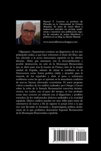 Oligarquía y Separatismo contiene un diagnóstico de los dos principales males, a que hace referencia el título del libro, que han afectado a la joven democracia española en las últimas décadas. El autor propone volver a muchos de los análisis realizados por Ortega y Gasset sobre la crisis de la llamada Restauración canovista decimonónica, los cuales, tras el paso del tiempo, se han probado como muy certeros en relación con el diagnóstico y posibles remedios de los tradicionales defectos atribuidos a la sociedad española, para tratar de orientarnos de nuevo a fin de superar la actual crisis a la que nos está llevando la fracasada y desprestigiada política dominante de la que podíamos denominar Segunda Restauración de la Monarquía Democrática española.