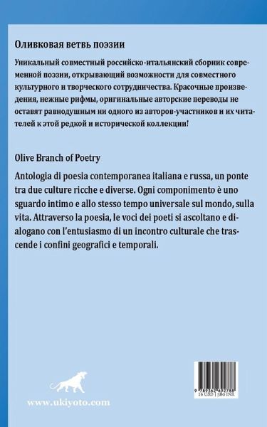 ¿¿¿¿¿¿¿¿¿ ¿¿¿¿¿ ¿¿¿¿¿¿ ¿¿¿¿¿¿¿¿¿¿ ¿¿¿¿¿¿¿¿¿¿ ¿¿¿¿¿¿¿¿¿-¿¿¿¿¿¿¿¿¿¿¿ ¿¿¿¿¿¿¿ ¿¿¿¿¿- ¿¿¿¿¿¿ ¿¿¿¿¿¿, ¿¿¿¿¿¿¿¿¿¿¿ ¿¿¿¿¿¿¿¿¿¿¿ ¿¿¿ ¿¿¿¿¿¿¿¿¿¿¿ ¿¿¿¿¿¿¿¿¿¿¿ ¿ ¿¿¿¿¿¿¿¿¿¿¿ ¿¿¿¿¿¿¿¿¿¿¿¿¿¿. ¿¿¿¿¿¿¿¿¿ ¿¿¿¿¿¿¿ ¿¿¿¿¿, ¿¿¿¿¿¿ ¿¿¿¿¿, ¿¿¿¿¿¿¿¿¿¿¿¿ ¿¿¿¿¿¿¿¿¿ ¿¿¿¿¿¿¿¿ ¿¿ ¿¿¿¿¿¿¿ ¿¿¿¿¿¿¿¿¿¿¿ ¿¿ ¿¿¿¿¿¿ ¿¿ ¿¿¿¿¿¿¿-¿¿¿¿¿¿¿¿¿¿ ¿ ¿¿ ¿¿¿¿- ¿¿¿¿¿ ¿ ¿¿¿¿ ¿¿¿¿¿¿ ¿ ¿¿¿¿¿¿¿¿¿¿¿¿ ¿¿¿¿¿¿¿¿¿! Olive Branch of Poetry Antologia di poesia contemporanea italiana e russa, un ponte tra due culture ricche e diverse. Ogni componimento è uno sguardo intimo e allo stesso tempo universale sul mondo, sulla vita. Attraverso la poesia, le voci dei poeti si ascoltano e di- alogano con l'entusiasmo di un incontro culturale che tras- cende i confini geografici e temporali.