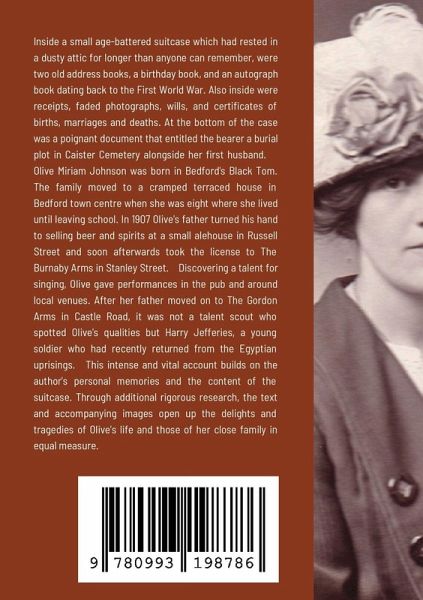 Inside a small age-battered suitcase which had rested in a dusty attic for longer than anyone can remember, were two old address books, a birthday book, and an autograph book dating back to the First World War. Also inside were receipts, faded photographs, wills, and certificates of births, marriages and deaths. At the bottom of the case was a poignant document that entitled the bearer a burial plot in Caister Cemetery alongside her first husband. Olive Miriam Johnson was born in Bedford's Black Tom. The family moved to a cramped terraced house in Bedford town centre when she was eight where she lived until leaving school. In 1907 Olive's father turned his hand to selling beer and spirits at a small alehouse in Russell Street and soon afterwards took the license to The Burnaby Arms in Stanley Street. Discovering a talent for singing, Olive gave performances in the pub and around local venues. After her father moved on to The Gordon Arms in Castle Road, it was not a talent scout who spotted Olive's qualities but Harry Jefferies, a young soldier who had recently returned from the Egyptian uprisings. This intense and vital account builds on the author's personal memories and the content of the suitcase. Through additional rigorous research, the text and accompanying images open up the delights and tragedies of Olive's life and those of her close family in equal measure.