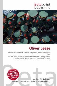 High Quality Content by WIKIPEDIA articles! Lieutenant-General Sir Oliver William Hargreaves Leese, 3rd Baronet, KCB, CBE, DSO (27 October 1894 - 22 January 1978) was a British general during World War II. Leese was the son of Sir William Hargreaves Leese, 2nd Baronet, a barrister, and attended Ludgrove School and Eton College. At the start of First World War, he joined the army and he was commissioned into the Coldstream Guards on 15 May 1915. Leese was wounded three times during the Somme offensive in 1916, was Mentioned in Despatches and awarded the DSO.