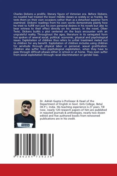 Charles Dickens a prolific, literary figure of Victorian era. Before Dickens, no novelist had treated the lower middle classes so widely or so frankly. He tests them on their own occasions rather than as a detached superior form examined. Dickens' readings from his own works demonstrate plainly how he tried to fulfill not just his own personal desires in his novels but also to bear witness to their effect directly on his viewers. In the novel, Oliver Twist, Dickens builds a plot centered on the boy's encounter with an ungrateful reality. Throughout the ages, literature in its variegated form has spoken of several social, political, economic, physical and psychological issues. Exploitation of children thus refers to unfair treatment meted out to children for any benefit. Exploitation of children includes using children for servitude through physical labor or personal, sexual gratification. Children also suffer from psychological exploitation, when they have to pass through difficult phases either in school or at home. They even suffer from social exploitation through racial discrimination or gender bias.