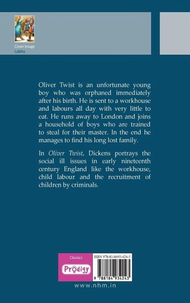 Oliver Twist is an unfortunate young noy who orphaned immediately after his birth. He is sent to a workhouse and labours all day with very little to eat. He runs aways to Landon and joins a household of boys who are trained to steal for their master. In the end manges to final his long lost family. In oliver twist dickens portrays the social ill issues inearly inieteenth century england like the workhouse child labour and the recruitment of children by criminals.