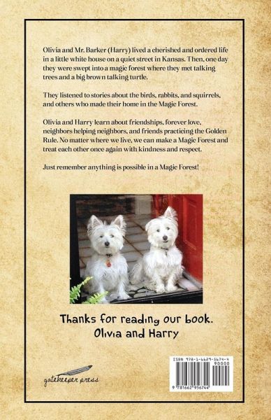 When Olivia and Mr. Barker (Harry) tumble through the darkness they arrive in a magic forest. They meet a big brown talking turtle named Walter. Walter tells them different stories of talking trees, twin brother rabbits who plant flowers and have a great vegetable garden, bluebird sisters, beavers who have a blues band, and many other residents of the Magic Forest. The Louders are a large, blended squirrel family who moved from Kentucky to settle in the Magic Forest. Readers who liked The Wind and the Willows, will love the Oliva and Mr. Barker In the Magic Forest-stories include adventure, rescue, neighbors helping neighbors, and forever love. Primitive illustrations bring the magical settings and engaging characters to life. Olivia and Harry return often to the Magic Forest and each time Walter has an engrossing story that has a reminder for them on the value of friendship, helping others, the Golden Rule, and the beauty of nature. Anything is possible in a Magic Forest!