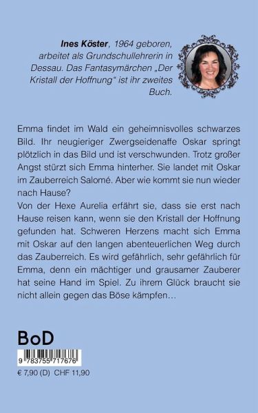 Emma findet im Wald ein geheimnisvolles schwarzes Bild. Ihr neugieriger Zwergseidenaffe Oskar springt plötzlich in das Bild und ist verschwunden. Trotz großer Angst stürzt sich Emma hinterher. Sie landet mit Oskar im Zauberreich Salomé. Aber wie kommt sie nun wieder nach Hause? Von der Hexe Aurelia erfährt sie, dass sie erst nach Hause reisen kann, wenn sie den Kristall der Hoffnung gefunden hat. Schweren Herzens macht sich Emma mit Oskar auf den langen abenteuerlichen Weg durch das Zauberreich. Es wird gefährlich, sehr gefährlich für Emma, denn ein mächtiger und grausamer Zauberer hat seine Hand im Spiel. Zu ihrem Glück braucht sie nicht allein gegen das Böse kämpfen...