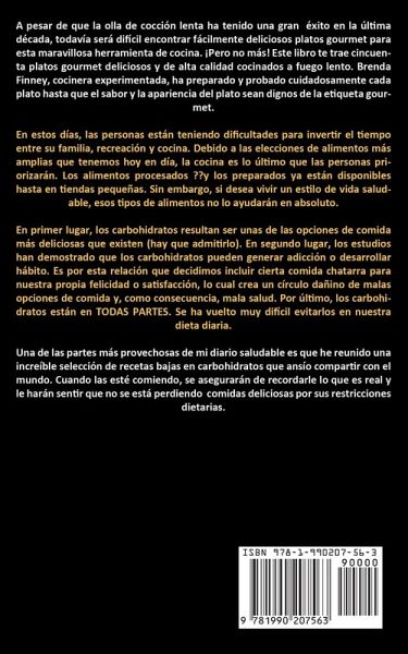 A pesar de que la olla de cocción lenta ha tenido una gran éxito en la última década, todavía será difícil encontrar fácilmente deliciosos platos gourmet para esta maravillosa herramienta de cocina. ¡Pero no más! Este libro te trae cincuenta platos gourmet deliciosos y de alta calidad cocinados a fuego lento. Brenda Finney, cocinera experimentada, ha preparado y probado cuidadosamente cada plato hasta que el sabor y la apariencia del plato sean dignos de la etiqueta gourmet. En estos días, las personas están teniendo dificultades para invertir el tiempo entre su familia, recreación y cocina. Debido a las elecciones de alimentos más amplias que tenemos hoy en día, la cocina es lo último que las personas priorizarán. Los alimentos procesados ??y los preparados ya están disponibles hasta en tiendas pequeñas. Sin embargo, si desea vivir un estilo de vida saludable, esos tipos de alimentos no lo ayudarán en absoluto. En primer lugar, los carbohidratos resultan ser unas de las opciones de comida más deliciosas que existen (hay que admitirlo). En segundo lugar, los estudios han demostrado que los carbohidratos pueden generar adicción o desarrollar hábito. Es por esta relación que decidimos incluir cierta comida chatarra para nuestra propia felicidad o satisfacción, lo cual crea un círculo dañino de malas opciones de comida y, como consecuencia, mala salud. Por último, los carbohidratos están en TODAS PARTES. Se ha vuelto muy difícil evitarlos en nuestra dieta diaria. Una de las partes más provechosas de mi diario saludable es que he reunido una increíble selección de recetas bajas en carbohidratos que ansío compartir con el mundo. Cuando las esté comiendo, se asegurarán de recordarle lo que es real y le harán sentir que no se está perdiendo comidas deliciosas por sus restricciones dietarias.