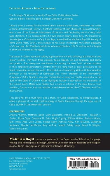 Ollam explores aspects of the Gaelic literary tradition and related traditions, with a focus on early and medieval Ireland. Topics include heroic legend, law and language, and poetry and poetics; genres covered include saga literature, law-texts, annals, bardic poetry (some of it edited and translated for the first time), and folklore.