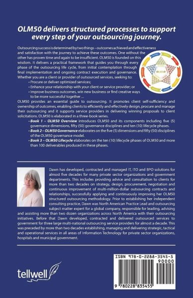OLM50 Outsourcing Success by Design Use structured, repeatable and optimized processes to design, deliver and manage your outsourcing. Outsourcing success is determined by two things - outcomes achieved and effectiveness and satisfaction with the journey to achieve these outcomes. One without the other has proven time and again to be insufficient. OLM50 is founded on this wisdom. It delivers a practical framework that guides you through every phase of the outsourcing life cycle, from initial contemplation of outsourcing through final implementation and ongoing contract execution and governance. Whether you are a client or provider of outsourced services, seeking to: ¿ Procure or deliver optimized services; ¿ Enhance your relationship with your client or service provider; or ¿ Improve business outcomes, win new business or find creative ways to be more successful together ... OLM50 provides an essential guide to outsourcing. It promotes client self-sufficiency and ownership of outcomes, enabling clients to efficiently and effectively design, procure and manage their outsourcing and it supports service providers in delivering winning proposals to client solicitations. From establishing strategies and vision, defining service requirements and scope, establishing roles and responsibilities, detailing service levels, setting pricing frameworks, and soliciting and evaluating service providers and offerings, OLM50 delivers support for your journey and improves your opportunity for long-term success. OLM50 is elaborated in a three-book series. ¿ Book 1 - OLM50 Overview introduces OLM50 and its components including the five (5) governance dimensions, the fifty (50) governance disciplines and the ten (10) lifecycle phases. ¿ Book 2 - OLM50 Governance explores in more detail and elaborates on the five (5) dimensions and fifty (50) disciplines of the OLM50 governance model. ¿ Book 3 - OLM50 Lifecycle explores in more detail and elaborates on the ten (10) lifecycle phases of OLM50 and the more than 100 deliverables produced in these phases.